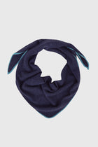 ...surgió este romance en forma de bufanda triangular que es pura esencia marinera. Navy con ribete blanco, la combinación más timeless del mundo en versión ULTRA suavidad. Es como si un marinero muy fino hubiera soñado el pañuelo perfecto y ¡voilá! Los artesanos mongoles lo hubieran hecho realidad.